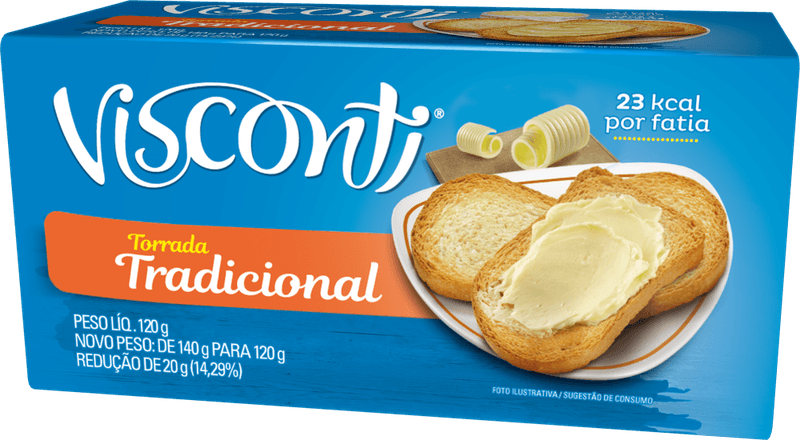 descrição de marketing: a torrada tradicional visconti é perfeita para seu dia a dia. muito prática e crocante, combina com qualquer momento.