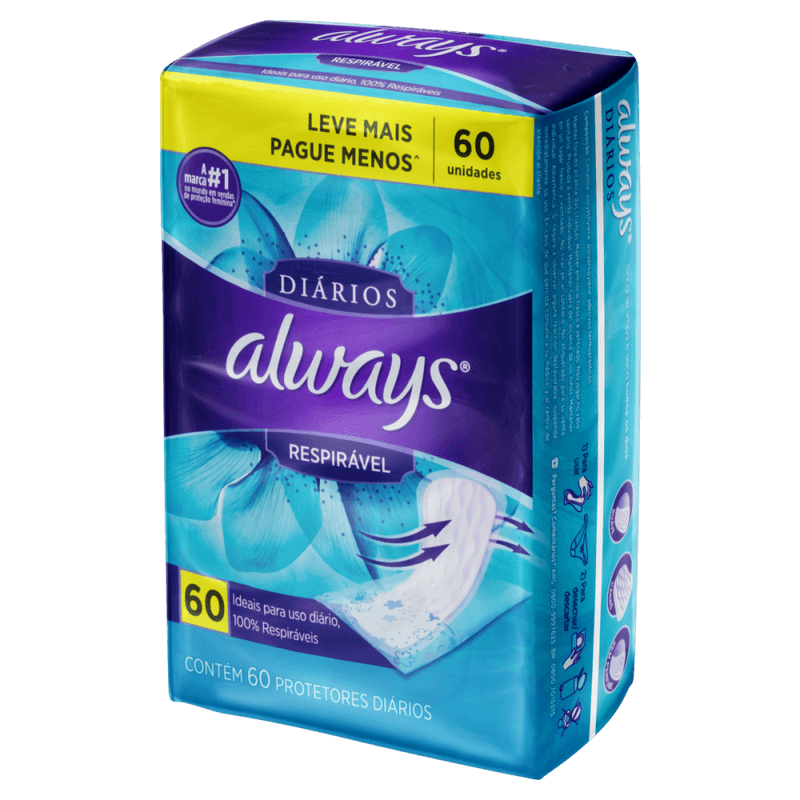 Protetor Diário Respirável Sem Abas Always Pacote 60 Unidades Leve Mais Pague Menos