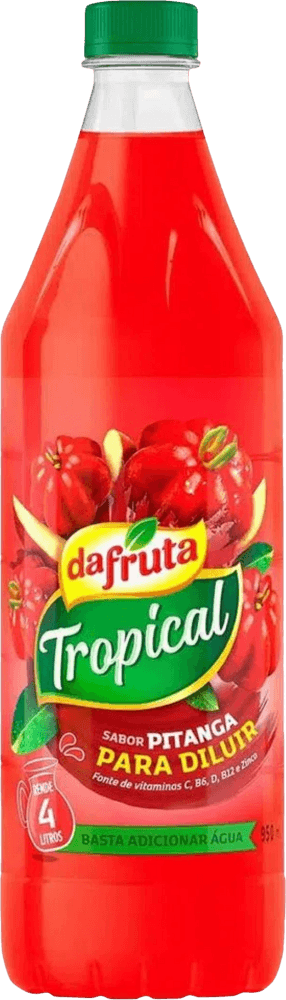 ingredientes: água, açúcar, suco de pitanga, suco concentrado de maçã, maltodextrina, vitamina c, sulfato de zinco, vitaminas b6, d e b12, acidulante: ácido cítrico (ins 330), espessantes: goma xantana (ins 415), goma acácia (ins 414) e goma arábica (ins 414), edulcorantes artificiais: sucralose (ins 955) e acesulfame de potássio (ins 950), estabilizantes: acetato isobutirato de sacarose (ins 444) e goma éster (ins 445), conservadores: benzoato de sódio (ins 211), sorbato de potássio (ins 202) e metabissulfito de sódio (ins 223), aromatizantes, corantes: vermelho 40 (ins 129) e amarelo crepúsculo fcf (ins 110).
