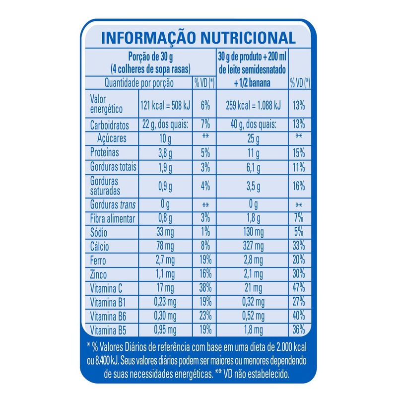 ingredientes:farinha de trigo enriquecida com ferro e ácido fólico (55%), açúcar, leite em pó integral (20%), vitaminas [vitamina c (ácido l-ascórbico), vitamina b5 (d-pantotenato de cálcio), vitamina b6 (cloridrato de piridoxina) e vitamina b1 (tiamina mononitrato)], minerais [cálcio (fosfato de cálcio dibásico), ferro (fumarato ferroso) e zinco (óxido de zinco)], sal e aromatizante.