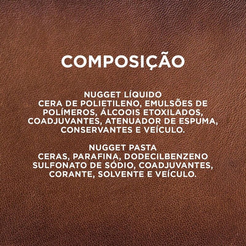 nugget líquido é o produto ideal para manutenção diária de calçados, jaquetas, calças, bota de couro.